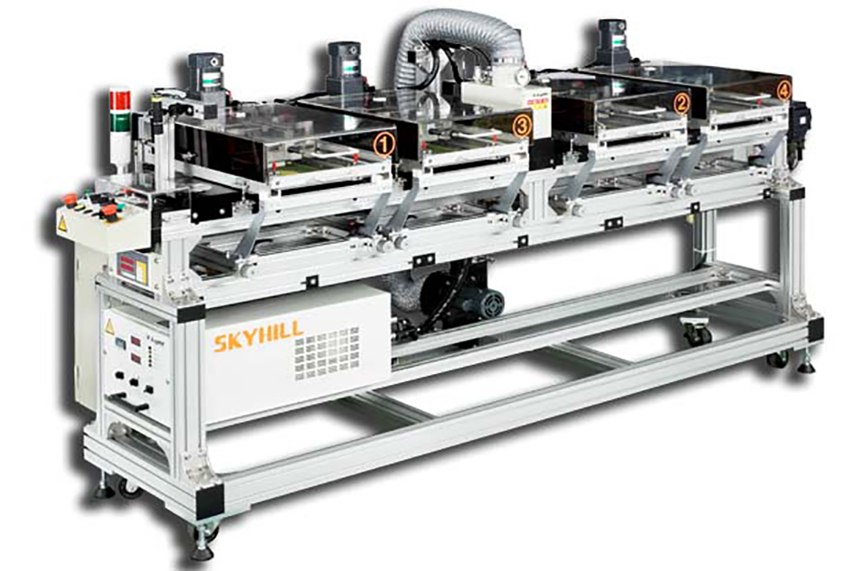 Four printing tables and one UV light